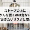 ストーブの上にやかんや鍋を置いている場合は、水の残量をチェックしましょう。